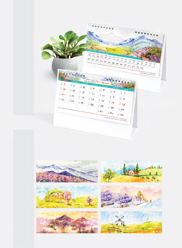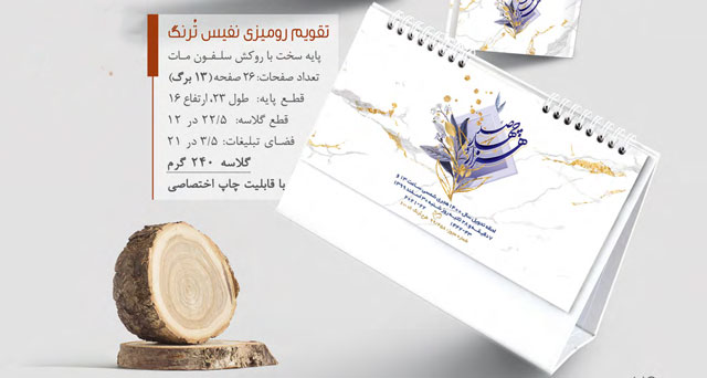چاپ سیلک تقویم رومیزی هر عدد 800 تومان (زیر 100 عدد 120/000 تومان ثابت)